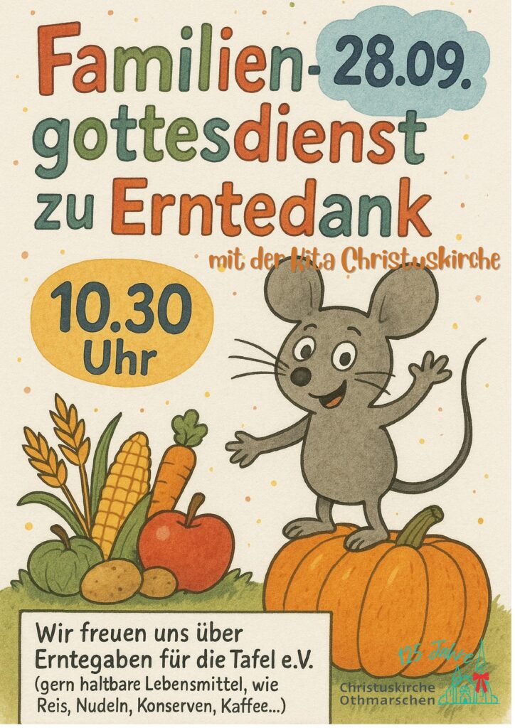 • Familiengottesdienst zu Erntedank mit der Kita am 28.09.2025