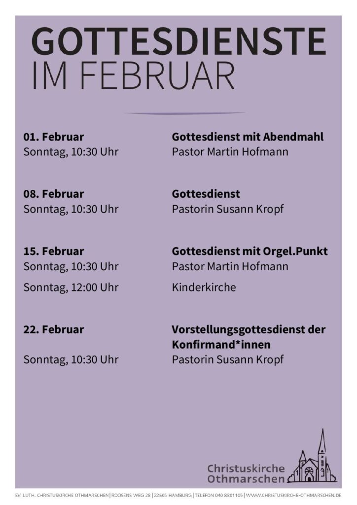 Gottesdienste im Februar
